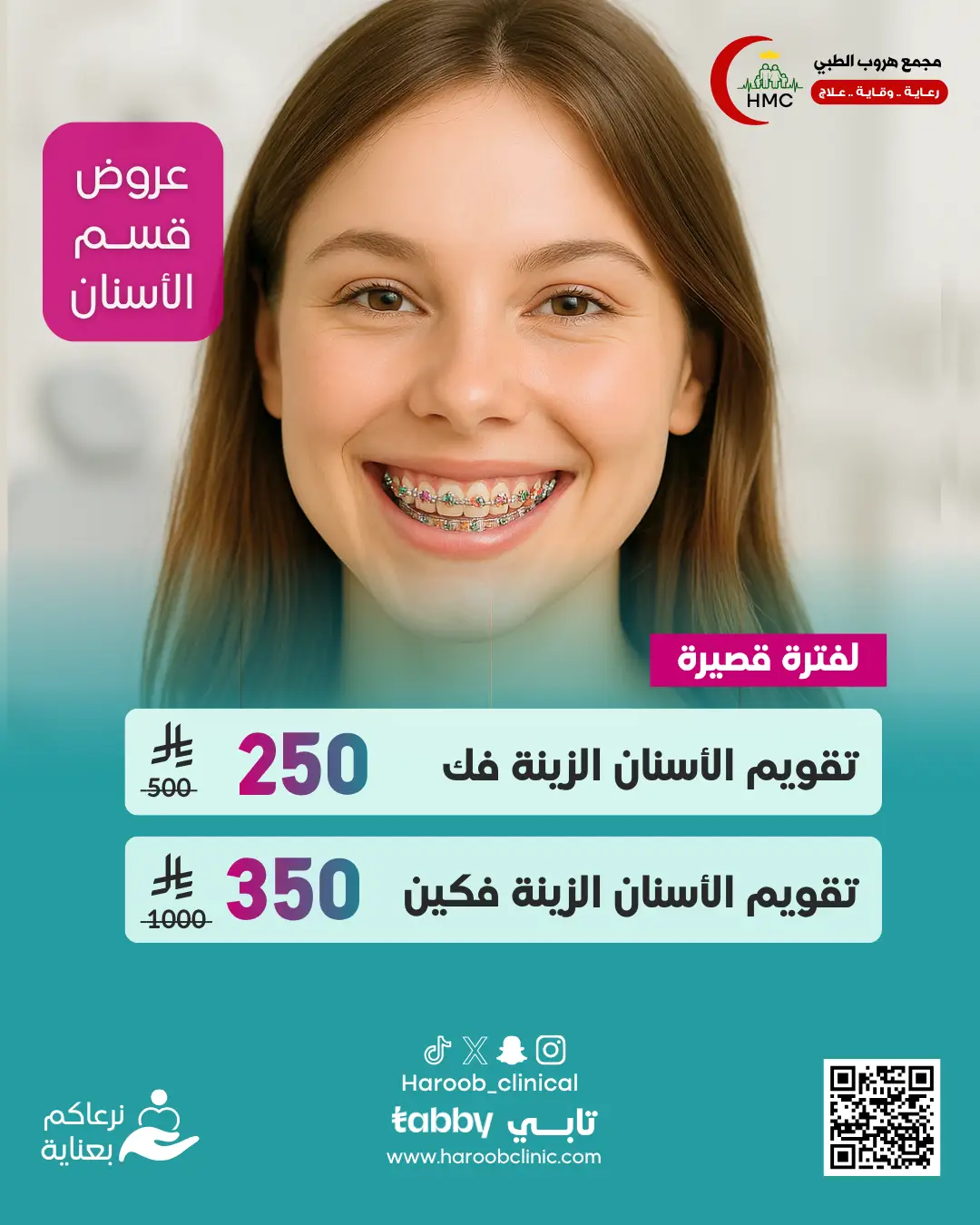 تركيب تقويم الاسنان الزينة فك واحد 250 ريال, تركيب تقويم الاسنان الزينة فكين 350 ريال