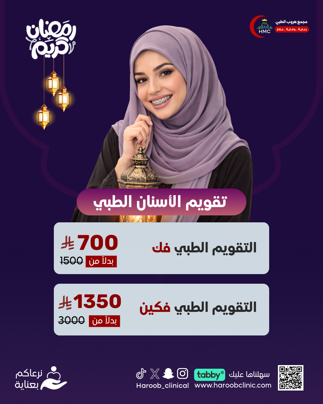 | اختر العرض | تركيب تقويم طبي فك واحد 700 ريال, تركيب تقويم طبي فكين 1350 ريال |